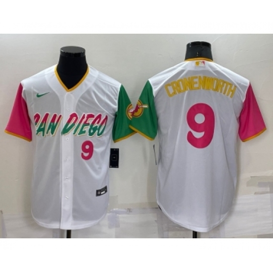 >Men's San Diego Padres #9 Jake Cronenworth White Number 2022 City Connect Cool Base Stitched Jersey