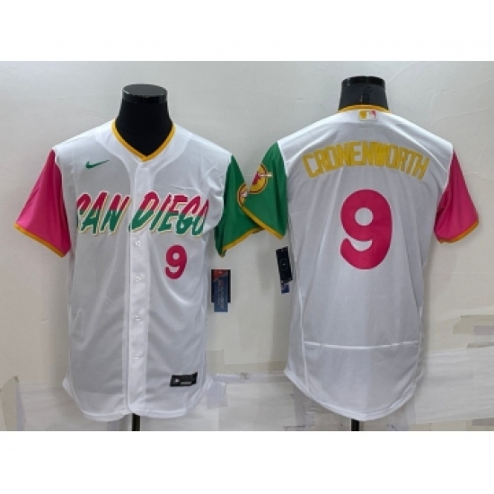 Men's San Diego Padres #9 Jake Cronenworth White Number 2022 City Connect Flex Base Stitched Jersey