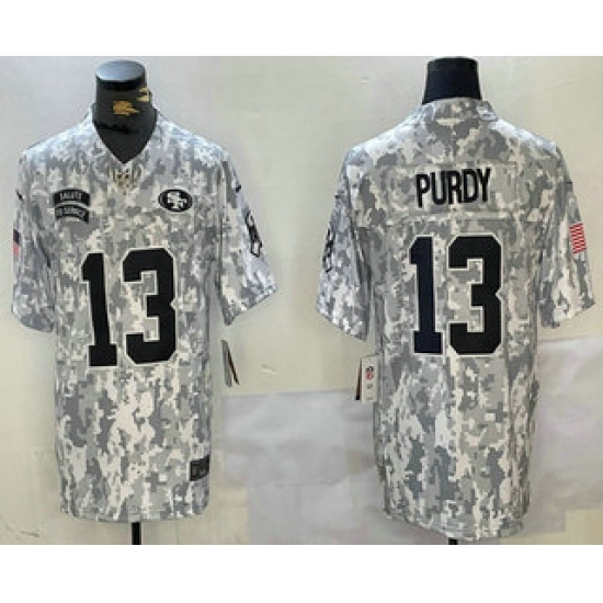 >Men's San Francisco 49ers #13 Brock Purdy 2024 FUSE Arctic Camo Salute to Service Limited Stitched Jersey