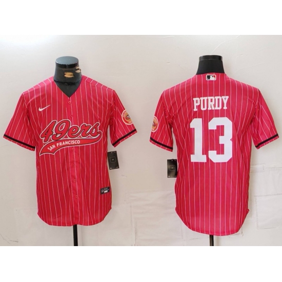>Men's San Francisco 49ers #13 Brock Purdy Red Pinstripe With Cool Base Stitched Baseball Jersey