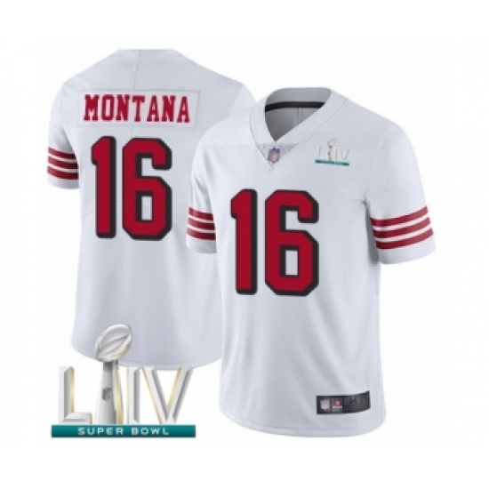 Men's San Francisco 49ers #16 Joe Montana Limited White Rush Vapor Untouchable Super Bowl LIV Bound Football Jersey