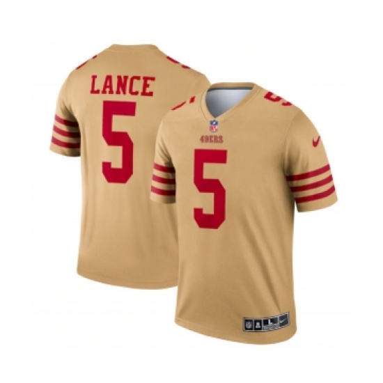 Men's San Francisco 49ers #5 Trey Lance 2022 New Gold Inverted Legend Stitched Football Jersey