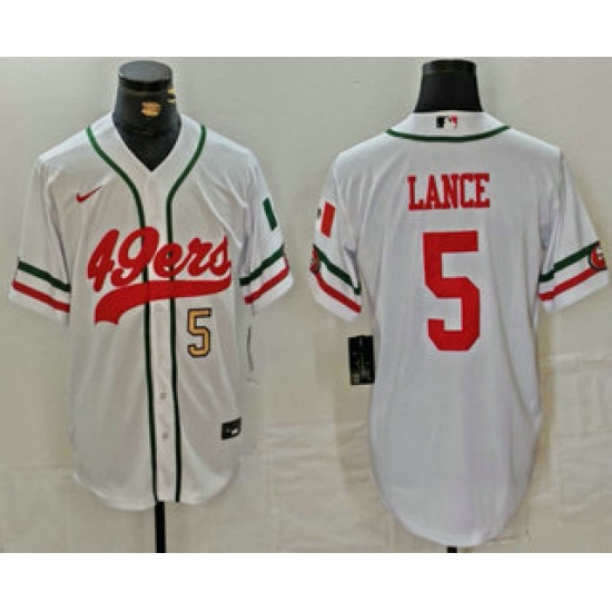 Men's San Francisco 49ers #5 Trey Lance Number White Mexico Cool Base Stitched Baseball Jersey