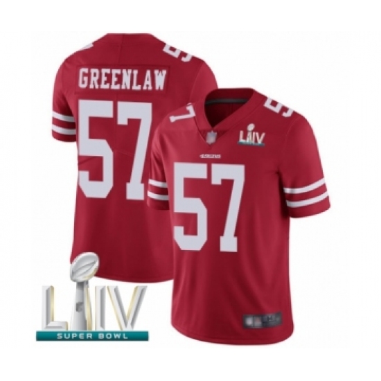 >Men's San Francisco 49ers #57 Dre Greenlaw Red Team Color Vapor Untouchable Limited Player Super Bowl LIV Bound Football Jersey