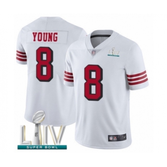 >Men's San Francisco 49ers #8 Steve Young Limited White Rush Vapor Untouchable Super Bowl LIV Bound Football Jersey