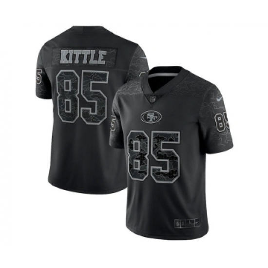>Men's San Francisco 49ers #85 George Kittle Black Reflective Limited Stitched Football Jersey