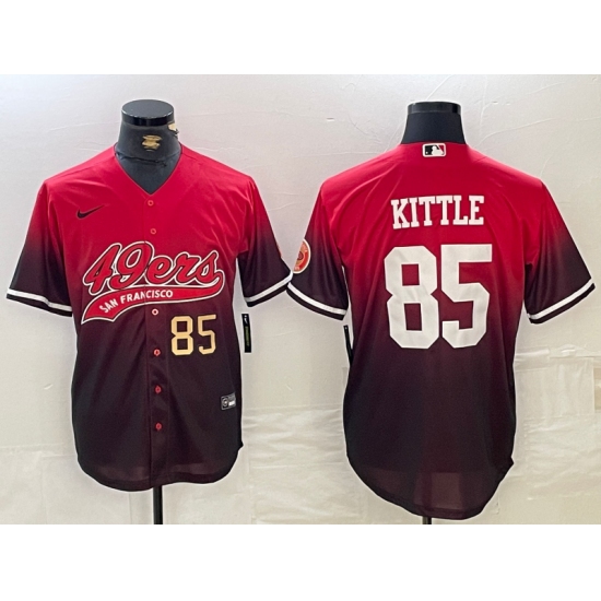>Men's San Francisco 49ers #85 George Kittle Red Black Cool Base Stitched Baseball Jerseys