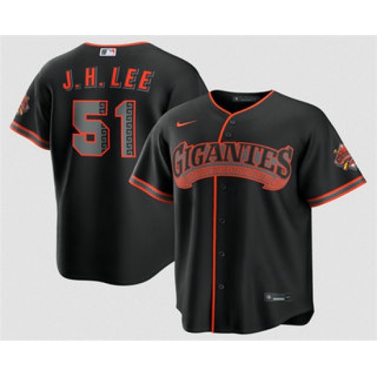 >Men's San Francisco Giants #51 Jung Hoo Lee Black 2026 Alternate Stadium Stitched Jersey