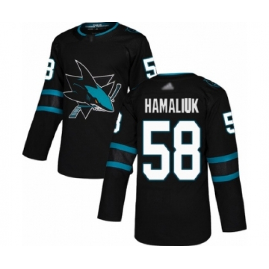 >Men's San Jose Sharks #58 Dillon Hamaliuk Authentic Black Alternate Hockey Jersey