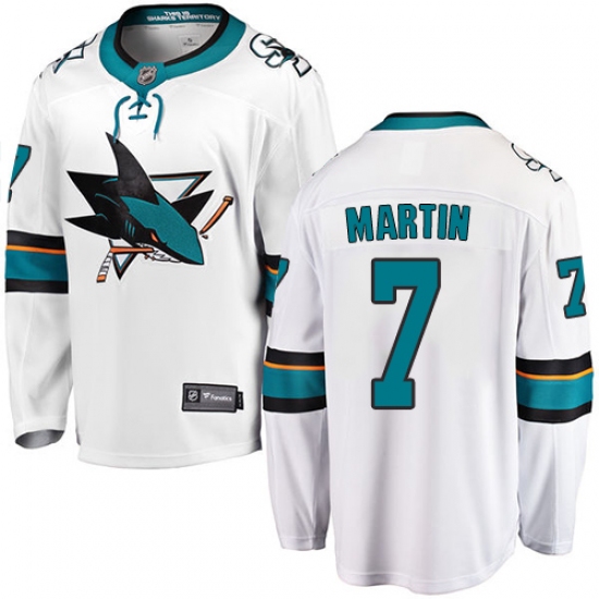 Home>NHL>San Jose Sharks>Paul Martin>Men's San Jose Sharks #7 Paul Martin Fanatics Branded White Away Breakaway NHL Jersey