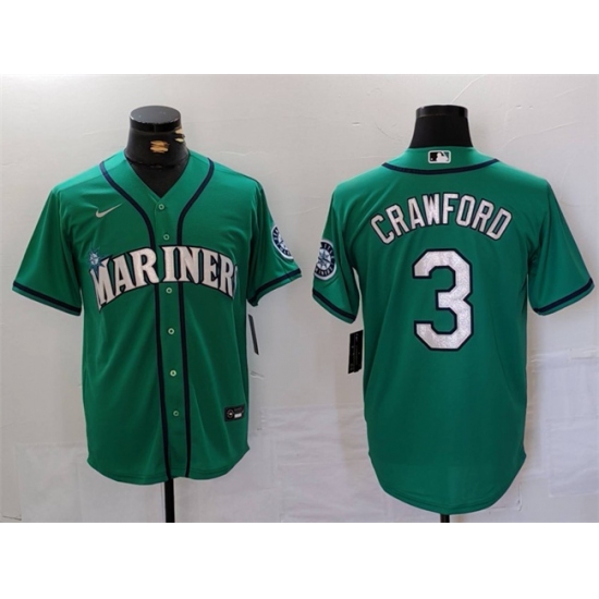 >Men's Seattle Mariners #3 J.P. Crawford Aqua Cool Base Stitched jersey