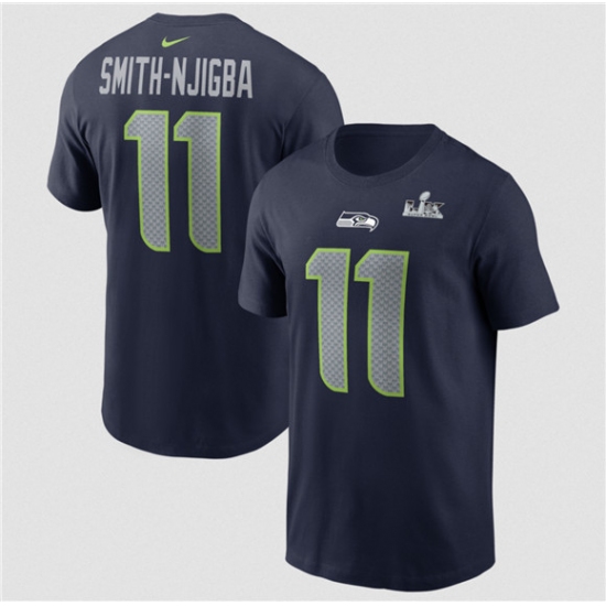 Men's Seattle Seahawks #11 Jaxon Smith-Njigba College Navy 2025 Super Bowl LX Patch Name & Number T-Shirt