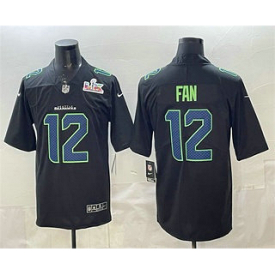 >Men's Seattle Seahawks #12 Fan Limited Black Super Bowl LX Fashion Vapor Jersey