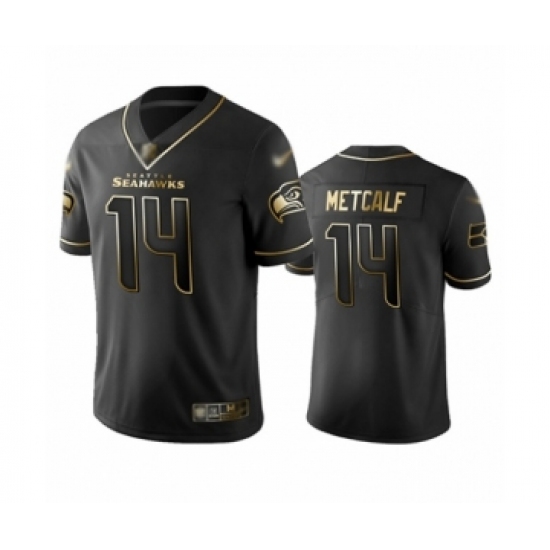 Men's Seattle Seahawks #14 D.K. Metcalf Limited Black Golden Edition Football Jersey