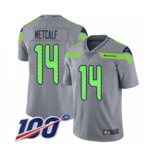 >Men's Seattle Seahawks #14 D.K. Metcalf Limited Silver Inverted Legend 100th Season Football Jersey
