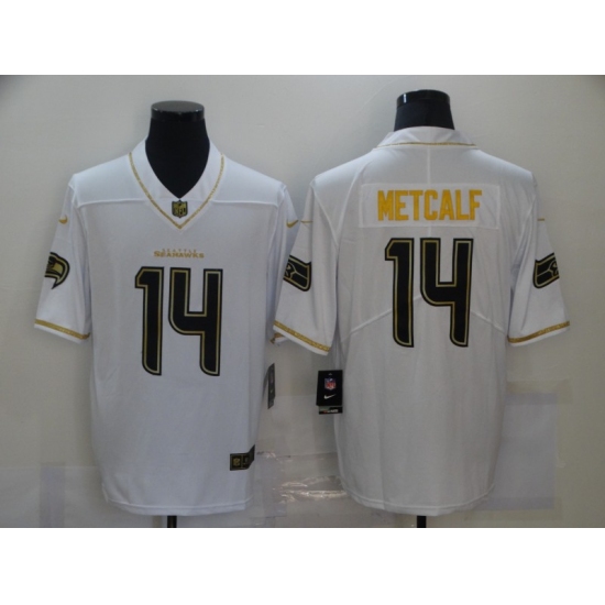Men's Seattle Seahawks #14 D.K. Metcalf White Olive Gold Nike Limited Jersey