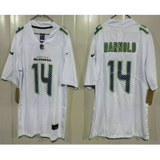 >Men's Seattle Seahawks #14 Sam Darnold Limited White Fashion Vapor Jersey