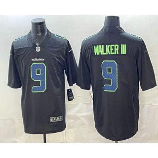 Men's Seattle Seahawks #9 Kenneth Walker III Black 2025 Super Bowl LX Carbon Fashion Vapor Untouchable Limited Stitched Football Jersey