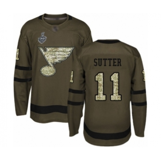 Men's St. Louis Blues #11 Brian Sutter Authentic Green Salute to Service 2019 Stanley Cup Final Bound Hockey Jersey