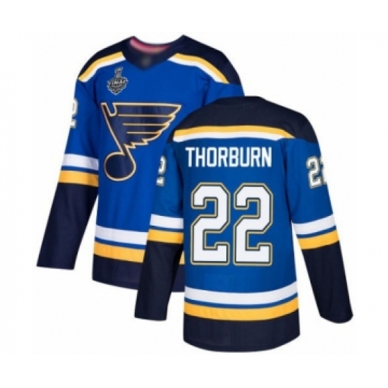 >Men's St. Louis Blues #22 Chris Thorburn Authentic Royal Blue Home 2019 Stanley Cup Final Bound Hockey Jersey