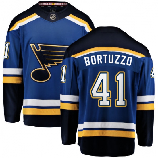 Home>NHL>St. Louis Blues>Robert Bortuzzo>Men's St. Louis Blues #41 Robert Bortuzzo Fanatics Branded Royal Blue Home Breakaway NHL Jersey