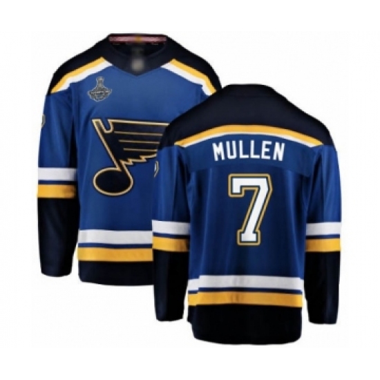 >Men's St. Louis Blues #7 Joe Mullen Fanatics Branded Royal Blue Home Breakaway 2019 Stanley Cup Champions Hockey Jersey