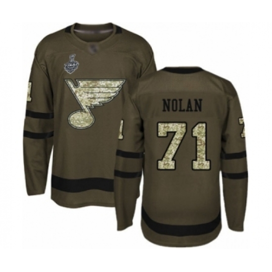 Men's St. Louis Blues #71 Jordan Nolan Authentic Green Salute to Service 2019 Stanley Cup Final Bound Hockey Jersey