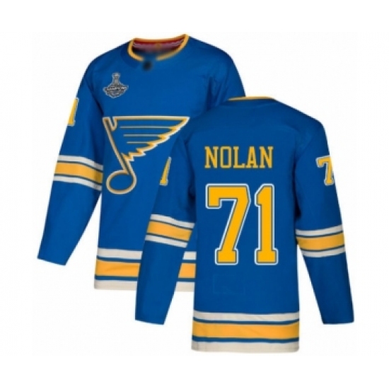 >Men's St. Louis Blues #71 Jordan Nolan Authentic Navy Blue Alternate 2019 Stanley Cup Champions Hockey Jersey