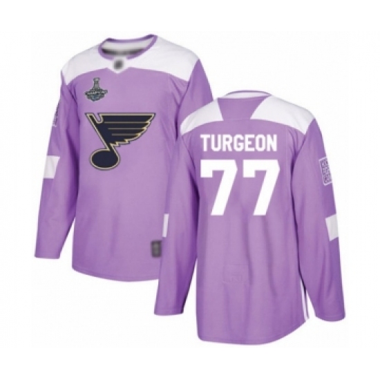 Men's St. Louis Blues #77 Pierre Turgeon Authentic Purple Fights Cancer Practice 2019 Stanley Cup Champions Hockey Jersey