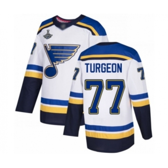 Men's St. Louis Blues #77 Pierre Turgeon Authentic White Away 2019 Stanley Cup Champions Hockey Jersey