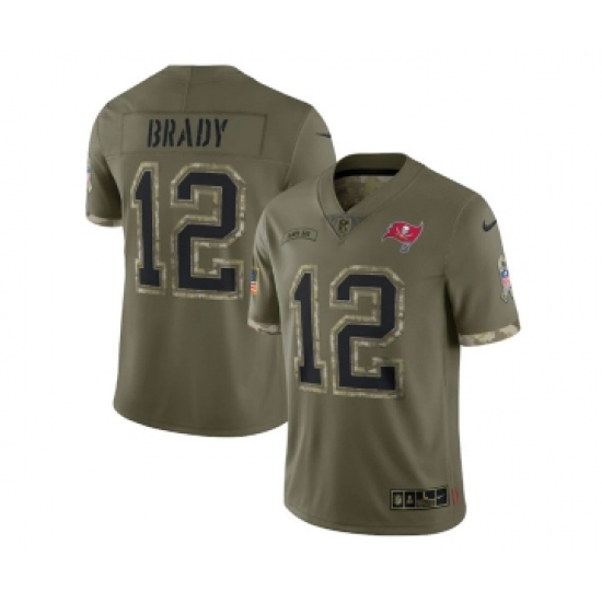 >Men's Tampa Bay Buccaneers #12 Tom Brady 2022 Olive Salute To Service Limited Stitched Jersey