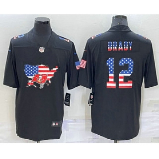 Men's Tampa Bay Buccaneers #12 Tom Brady 2022 USA Map Fashion Black Color Rush Stitched Nike Limited Jersey