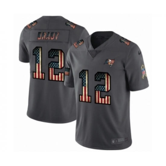 >Men's Tampa Bay Buccaneers #12 Tom Brady Limited Black USA Flag 2019 Salute To Service Football Jersey