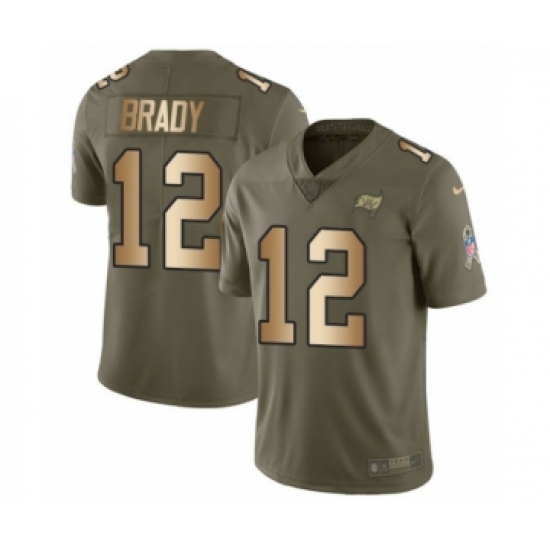 Men's Tampa Bay Buccaneers #12 Tom Brady Olive Gold Limited 2017 Salute To Service Jersey
