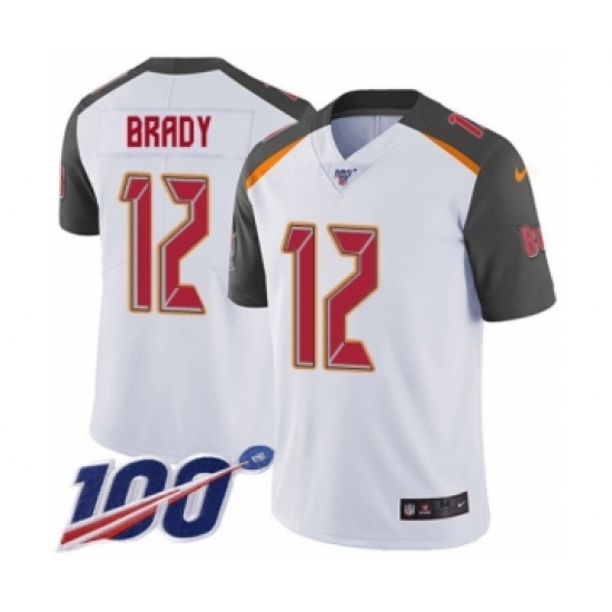 Men's Tampa Bay Buccaneers #12 Tom Brady White Vapor Untouchable Limited Player 100th Season Football Jersey