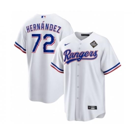 Men's Texas Rangers #72 Jonathan Hernández White 2023 World Series Stitched Baseball Jersey