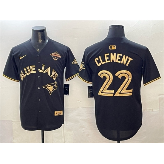 Men's Toronto Blue Jays #22 Ernie Clement Black Gold 2025 American League Champions Limited Stitched Baseball Jersey