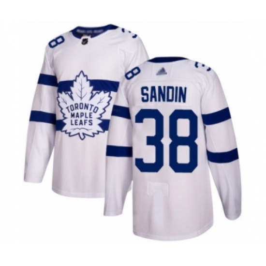 Men's Toronto Maple Leafs #38 Rasmus Sandin Authentic White 2018 Stadium Series Hockey Jersey
