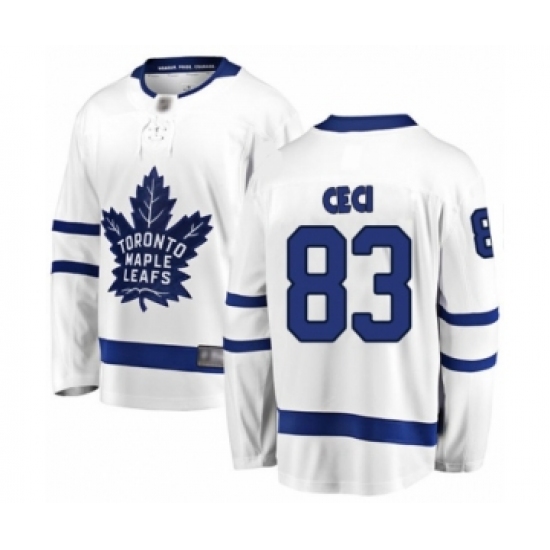 >Men's Toronto Maple Leafs #83 Cody Ceci Authentic White Away Fanatics Branded Breakaway Hockey Jersey