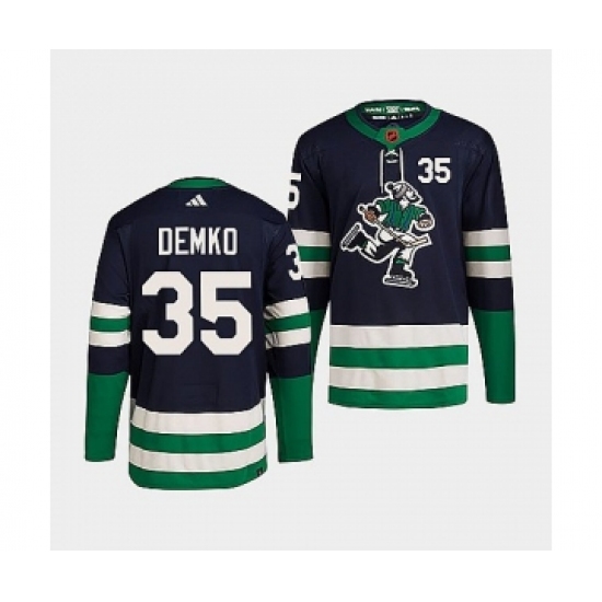Men's Vancouver Canucks #35 Thatcher Demko Navy 2022 Reverse Retro Stitched Jersey