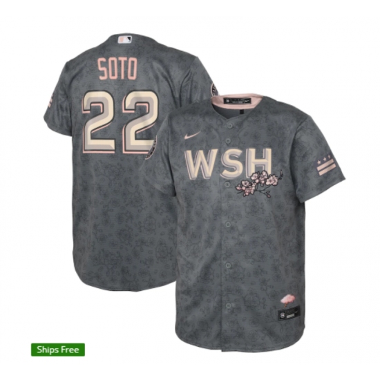 >Men's Washington Nationals #22 Juan Soto Nike Gray 2022 City Connect Replica Player Jersey