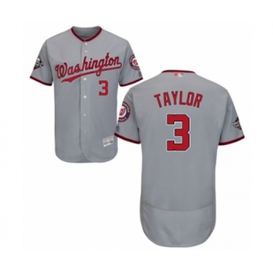 Men's Washington Nationals #3 Michael Taylor Grey Road Flex Base Authentic Collection 2019 World Series Champions Baseball Jersey