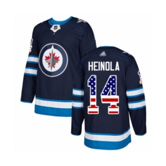 >Men's Winnipeg Jets #14 Ville Heinola Authentic Navy Blue USA Flag Fashion Hockey Jersey