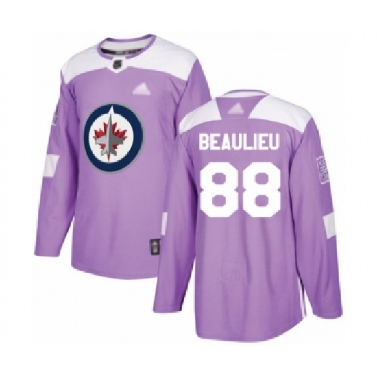 >Men's Winnipeg Jets #88 Nathan Beaulieu Authentic Purple Fights Cancer Practice Hockey Jersey