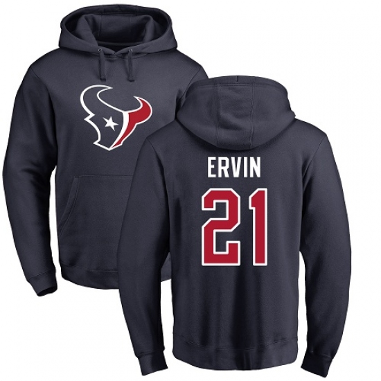 NFL Nike Houston Texans #21 Tyler Ervin Navy Blue Name & Number Logo Pullover Hoodie