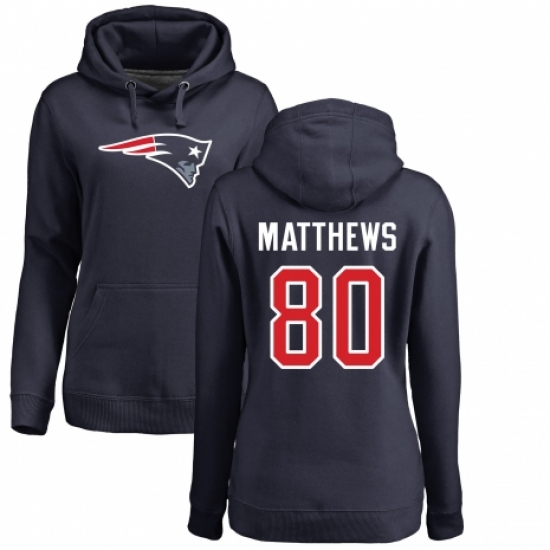 NFL Women's Nike New England Patriots #80 Jordan Matthews Navy Blue Name & Number Logo Pullover Hoodie