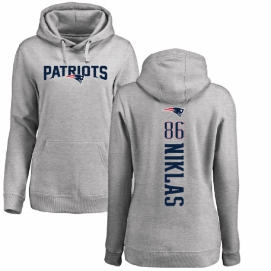 >NFL Women's Nike New England Patriots #86 Troy Niklas Ash Backer Pullover Hoodie