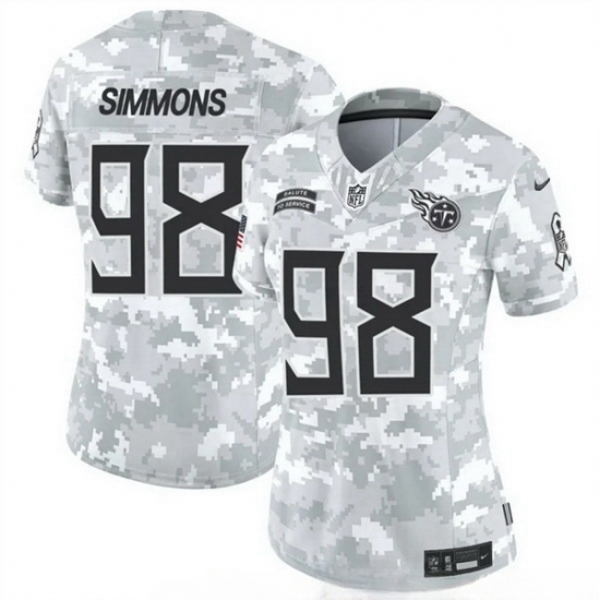 >Women Tennessee Titans #98 Jeffery Simmons 2024 F U S E Arctic Camo Salute To Service Limited Stitched Football Jersey