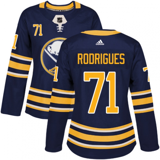 Home>NHL>Buffalo Sabres>Evan Rodrigues>Women's Adidas Buffalo Sabres #71 Evan Rodrigues Authentic Navy Blue Home NHL Jersey