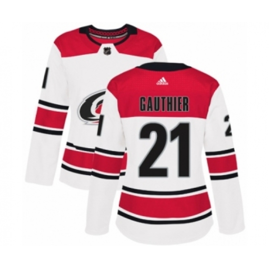 >Women's Adidas Carolina Hurricanes #21 Julien Gauthier Authentic White Away NHL Jersey